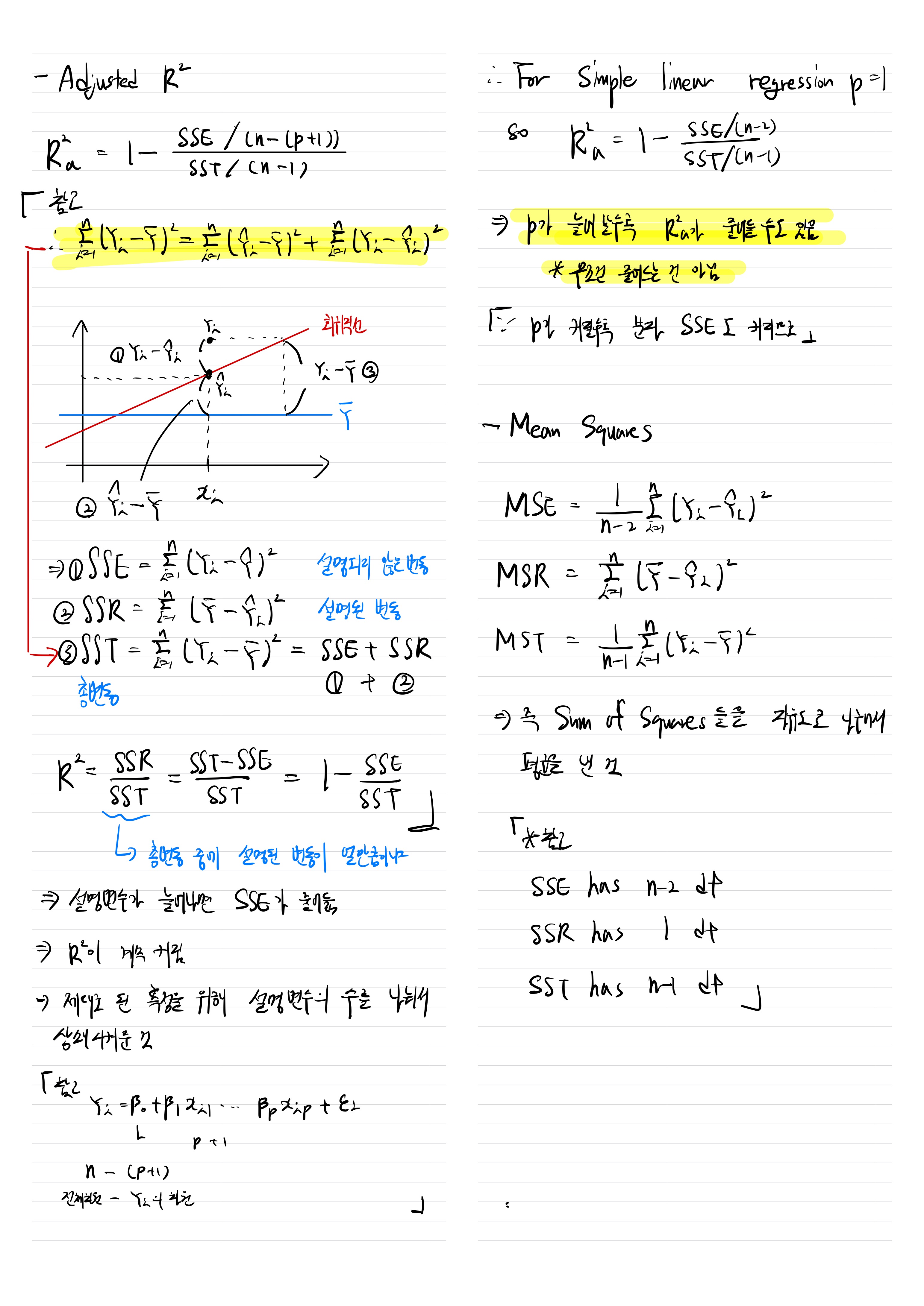 Adjusted R-square, Mean Square, F-statistics 본문